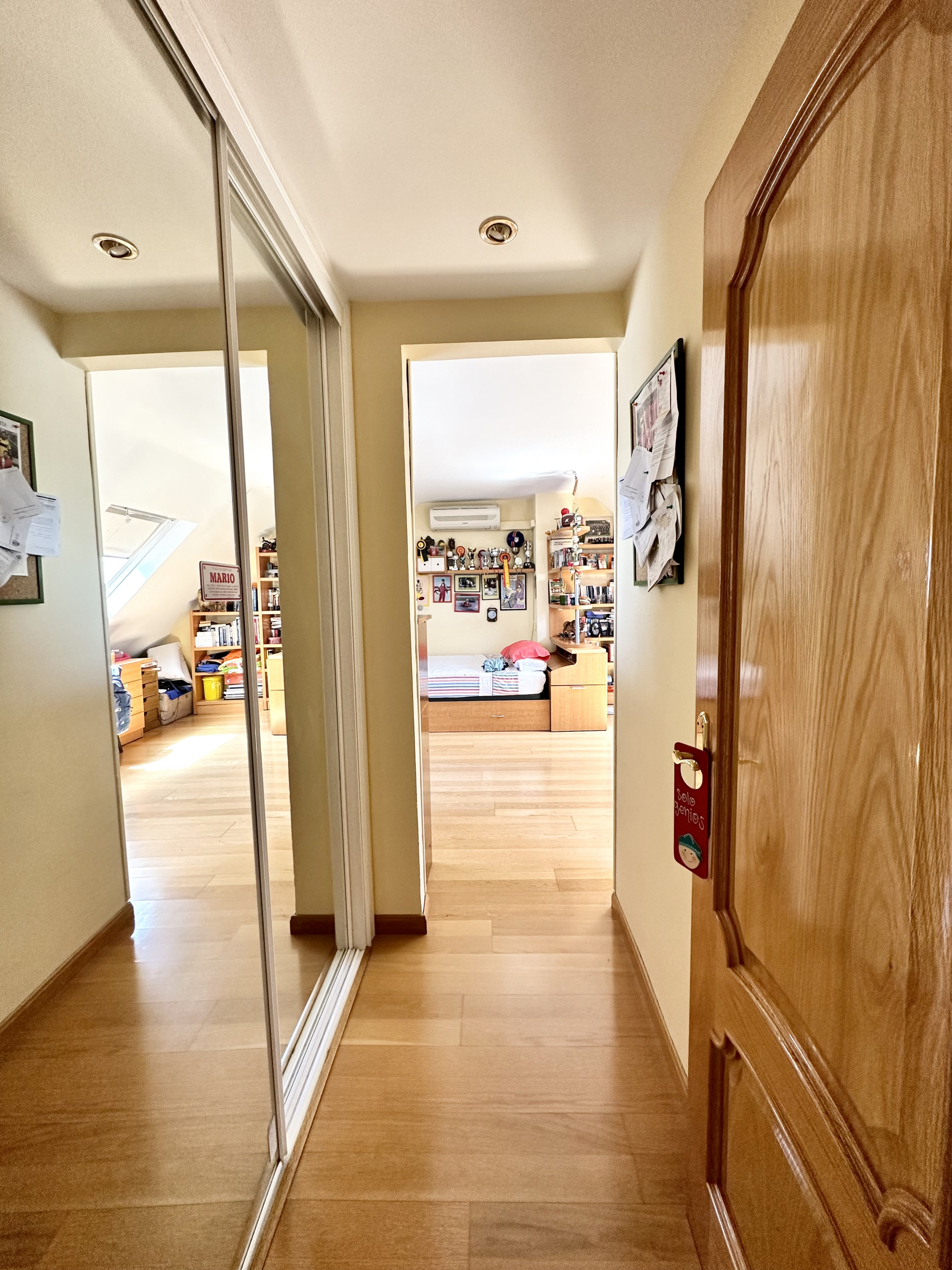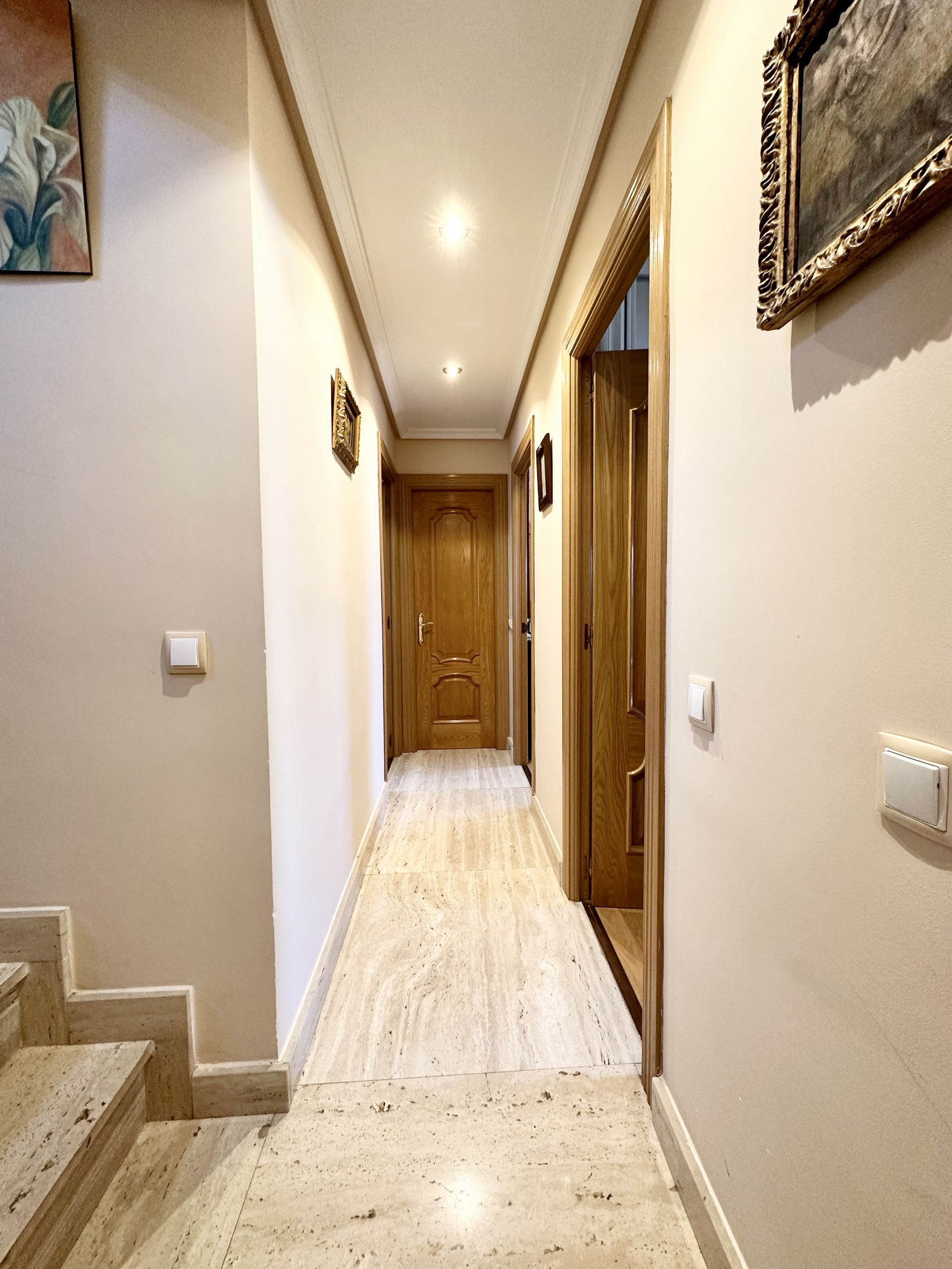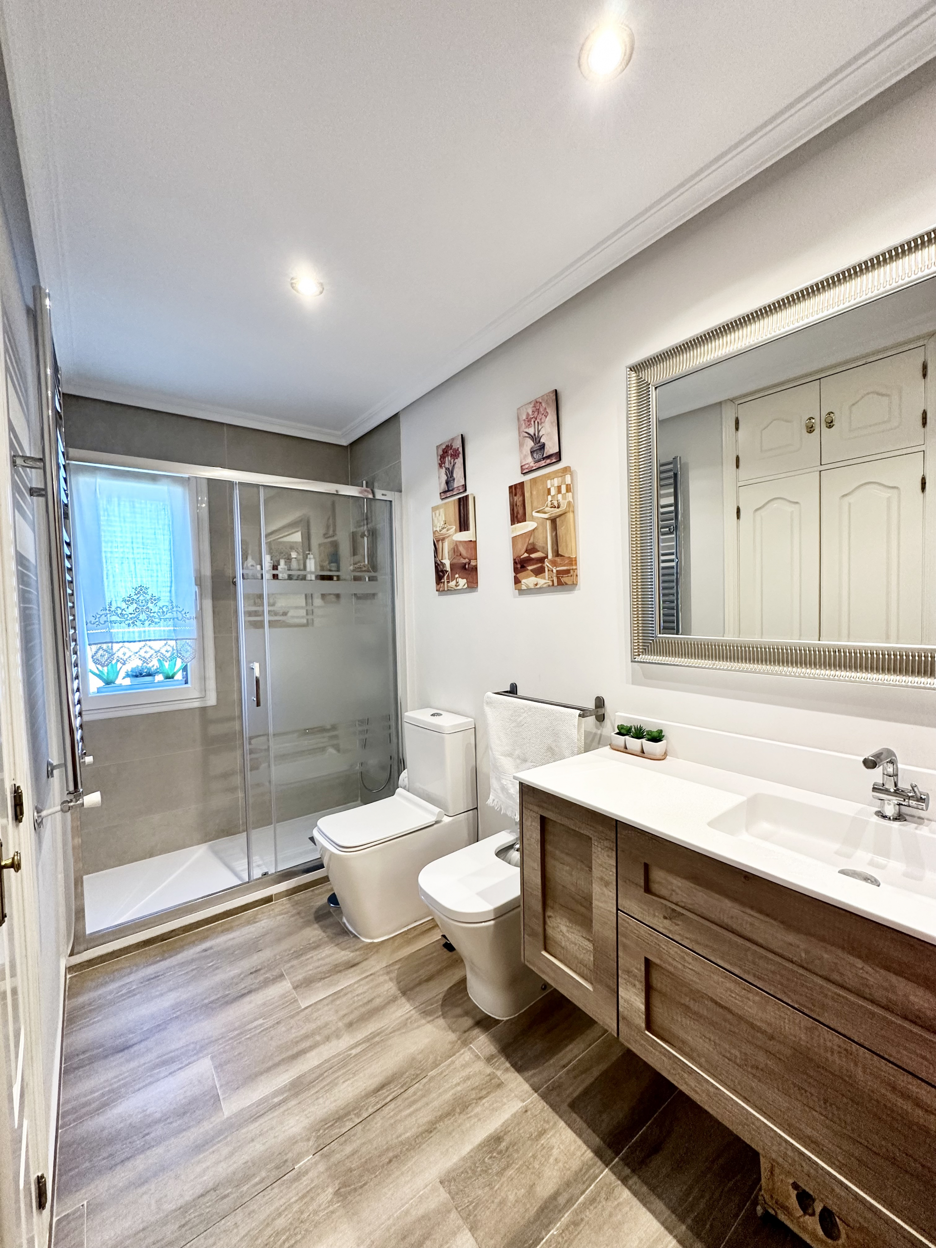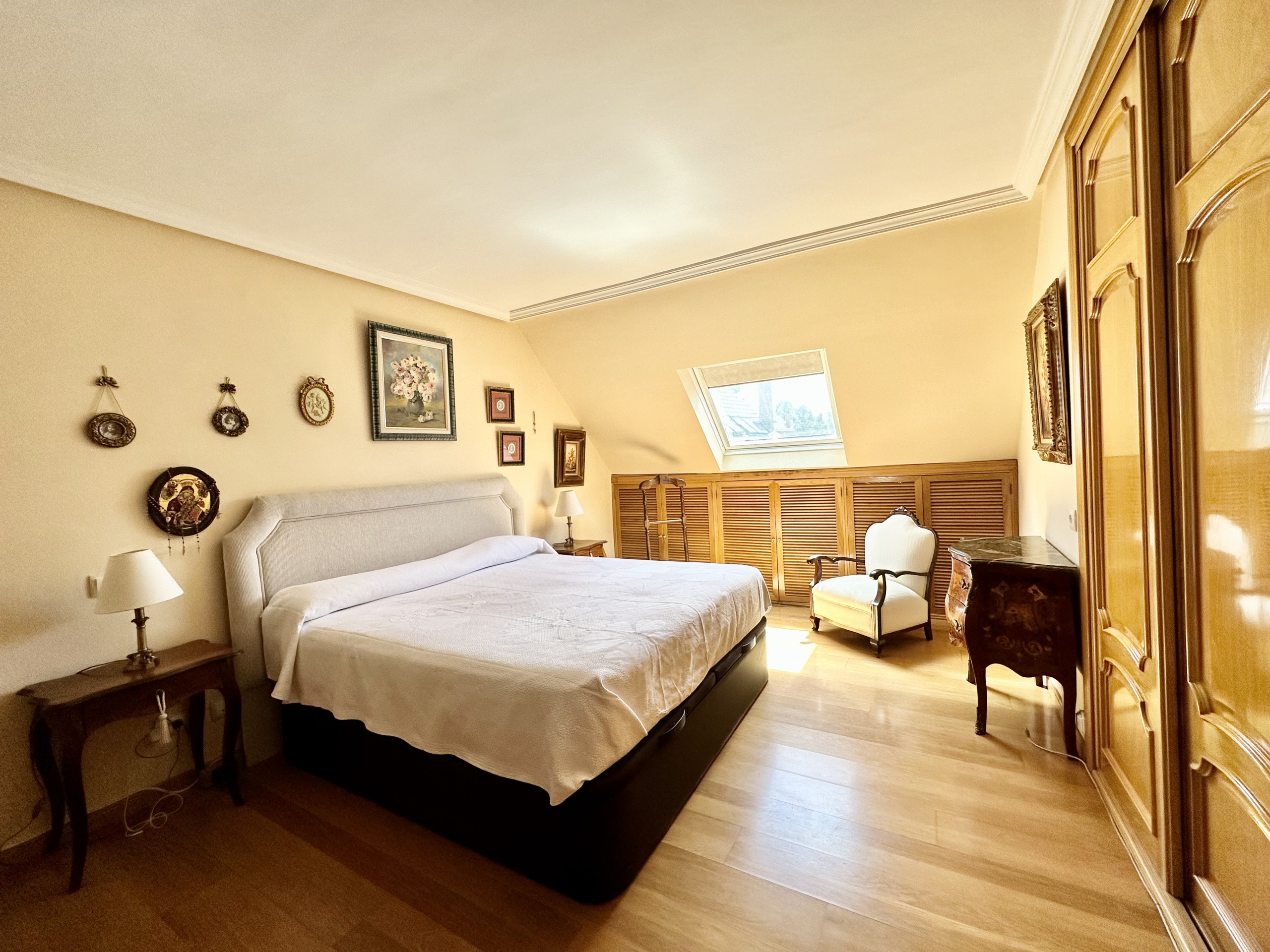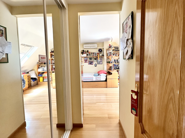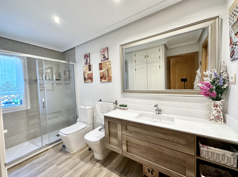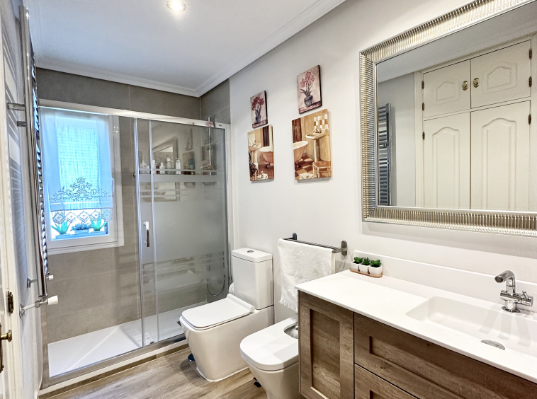 En la primera planta tenemos tres habitaciones una de ellas en suite de casi 20m2. El baño de la habitación principal, totalmente reformado, tiene doble entrada por lo que también da servicio a las otras dos habitaciones.